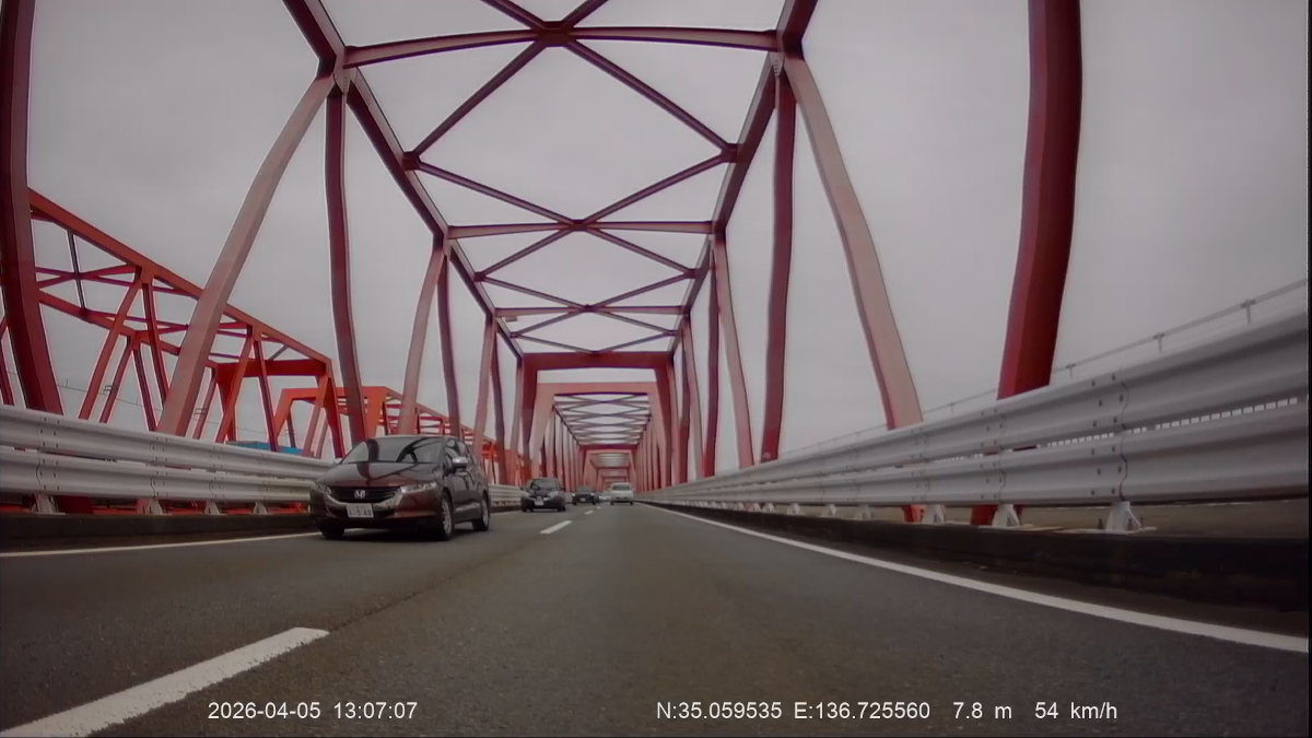 途中また、いなべモータースポーツランド近くを通ったのだが、ふと、不思議なコンクリートのオーバパスについて調べてみたくなった。前後にトラ縞の鉄枠があって3.8mの高さ制限があるのだ。それはオーバパスを保護する目的で存在するに違いない。保護の対象となっているオーバパスは一体なんなのか? まぁ、だいたい想像はついているのだけれど……。