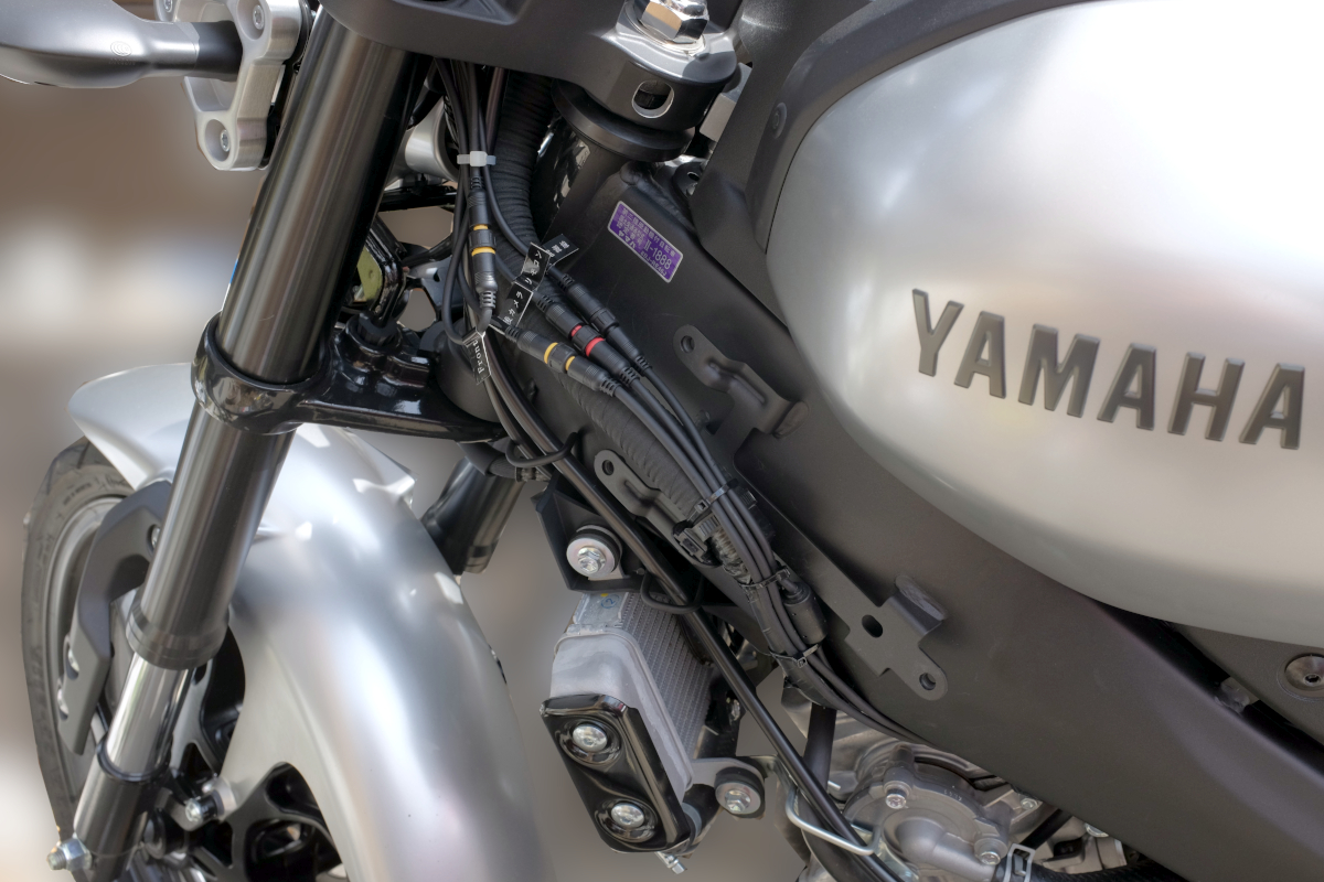 配線は既存の左のエアースクープの下の配線にもう一本増やす感じでだいぶキレイに配線できた。この部分はもう最終形ということにしてもいいかもな。