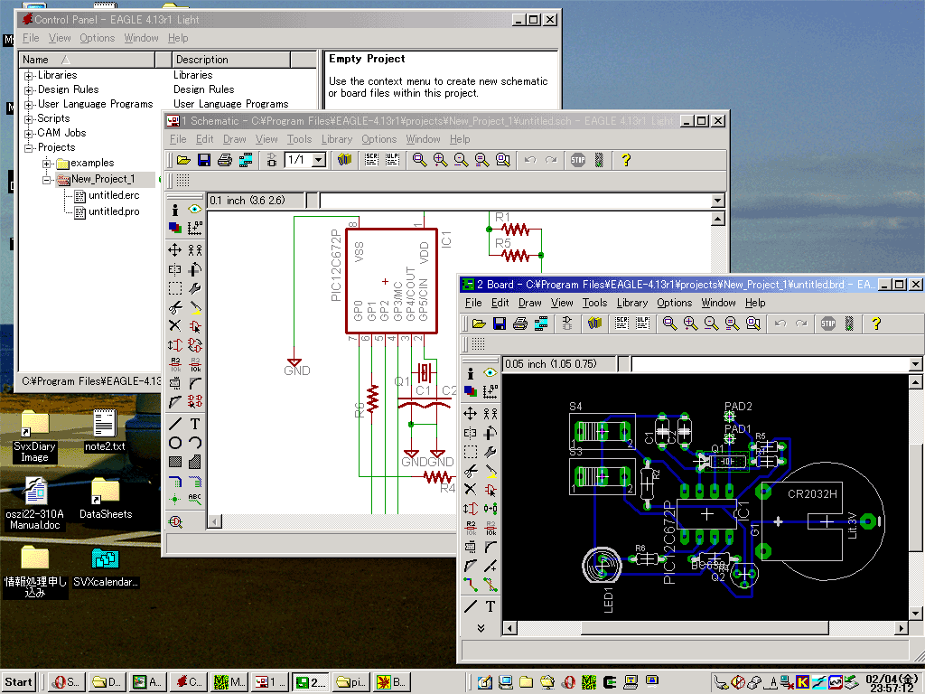 なかなかガツーンと時間が取れないものの、ボチボチとPCB-CAD「EAGLE」をイジる。昨日、概ね日本語のチュートリアルの通りに操作し、大筋の操作はわかった。しかしながら、それだけだと大筋の操作から一歩も出られない。ココは一発、実践に近い形で操作をするのである。