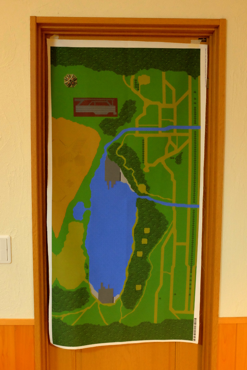 スペックは「布プリント, コットン・ツイル(213gsm), 128x64cm」で送料込みで4,500円。柄は、ネット上からゼビウスのフルマップを探してきて、上下の森を少し延ばし、左右端を少し延ばし、アンドアジェネシスを貼り付けたもの。本当は地上物、特にすべてのソルを追加したかったが、やりだすと時間がかかりすぎるので断念。